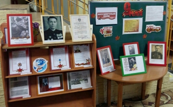 Наш коллектив, родители и воспитанники присоединились к Всероссийской акции «Бессмертный полк» организовав ежегодную выставку в память о воинах Великой Отечественной войны. В общем строю Бессмертного полка погибшие и пропавшие без вести на фронтах самой кровавой войны в истории человечества, ушедшие из жизни после войны и живущие рядом с нами: наши отцы, деды, прадеды. По-разному сложились их судьбы, но они с честью пронесли гордое звание Солдата Великой Отечественной. На выставке под Знаменем Победы размещены портреты ветеранов с их краткими биографиями. Сбор информации об участниках не прекращается.